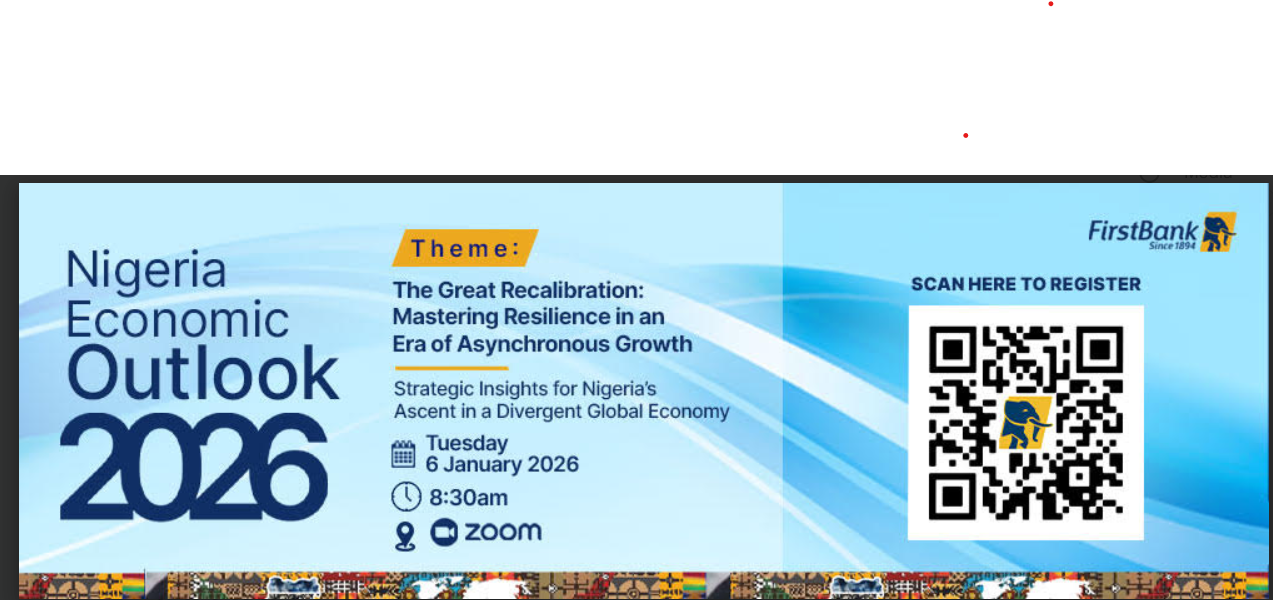 FirstBank, West Africa’s premier financial institution and a leading financial inclusion service provider, has announced the Nigeria Economic Outlook 2026, scheduled to hold on Tuesday, 6 January 2025. The session will convene under the theme “The Great Calibration: Mastering Resilience in an Era of Asynchronous Growth.”