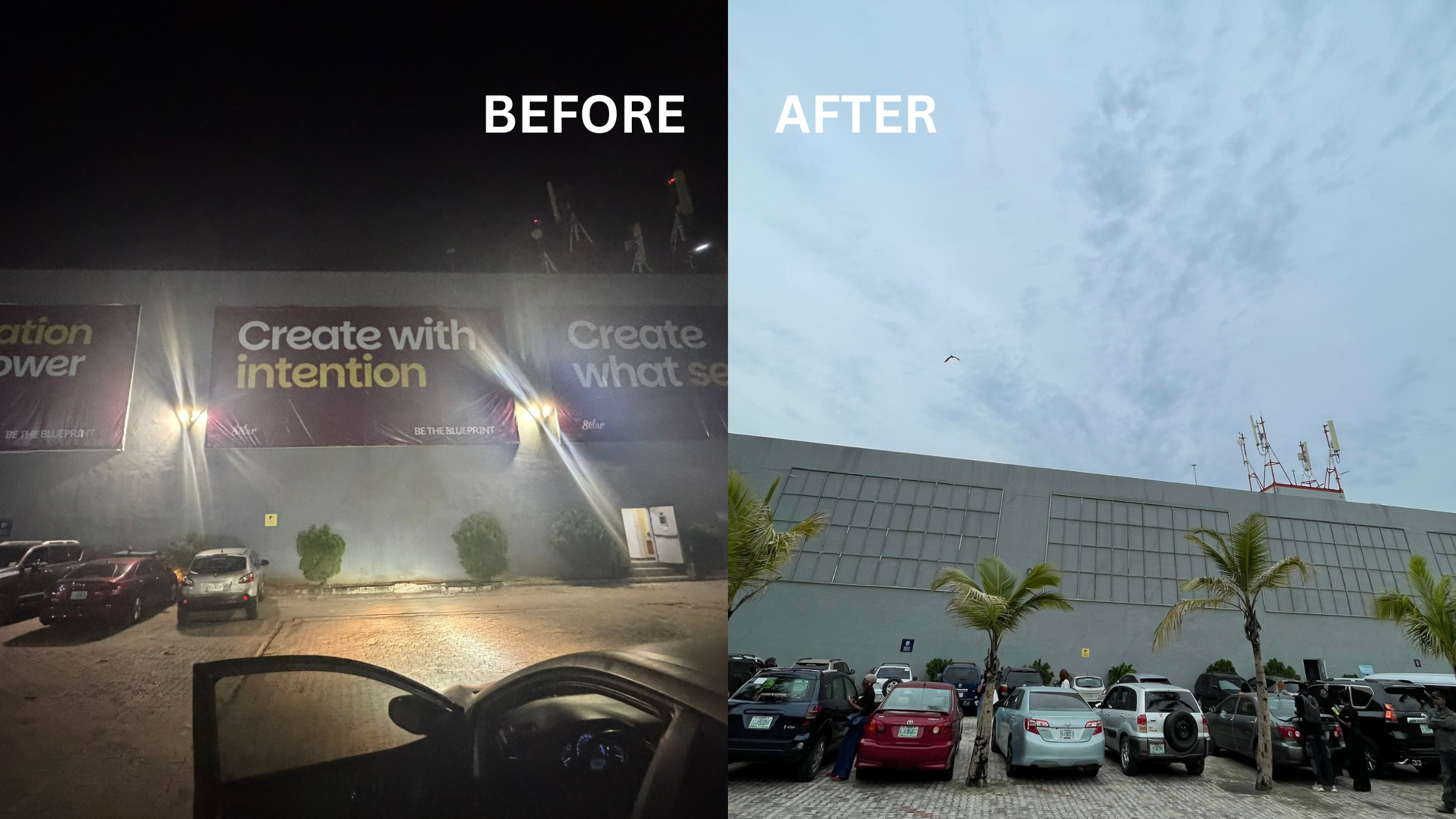 Another early post came from @Saamu_Eleja, a fintech storyteller and event industry commentator. He shared photos of the illuminated billboards outside Landmark Event Centre.