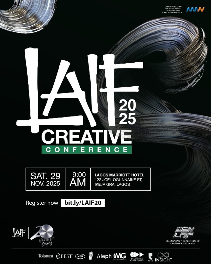 The Association of Advertising Agencies of Nigeria (AAAN) announced the 2025 LAIF Creative Conference. It will take place on Saturday, November 29, 2025, at the Lagos Marriott Hotel, GRA, Ikeja, Lagos. The event runs from 9:00 AM to 6:00 PM.