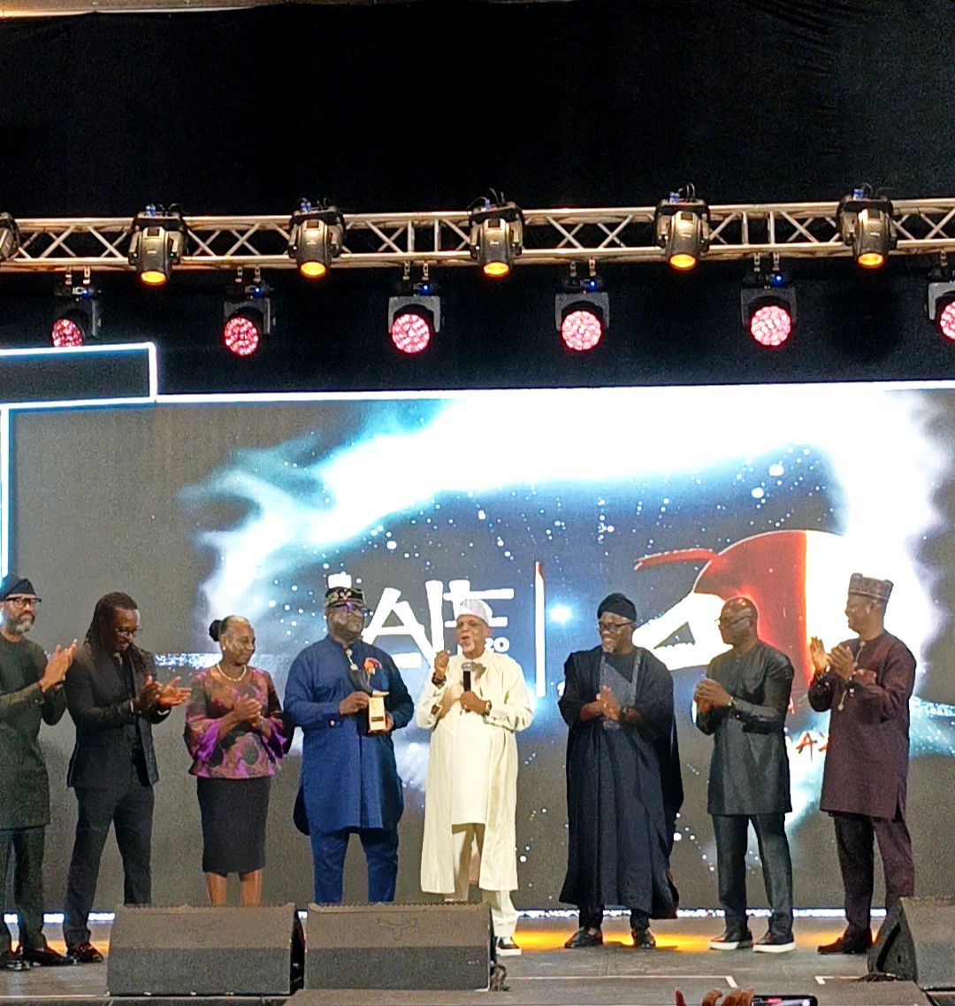 “Tonight is special because we are not just gathered to celebrate creativity,” he continued. “We are introducing a new category, a new form of the LAIF Icon Award.” He asked, “Who better to receive the Icon Award than Dr. Biodun Shobanjo?” This award recognizes the shoulders on which the industry stands.
