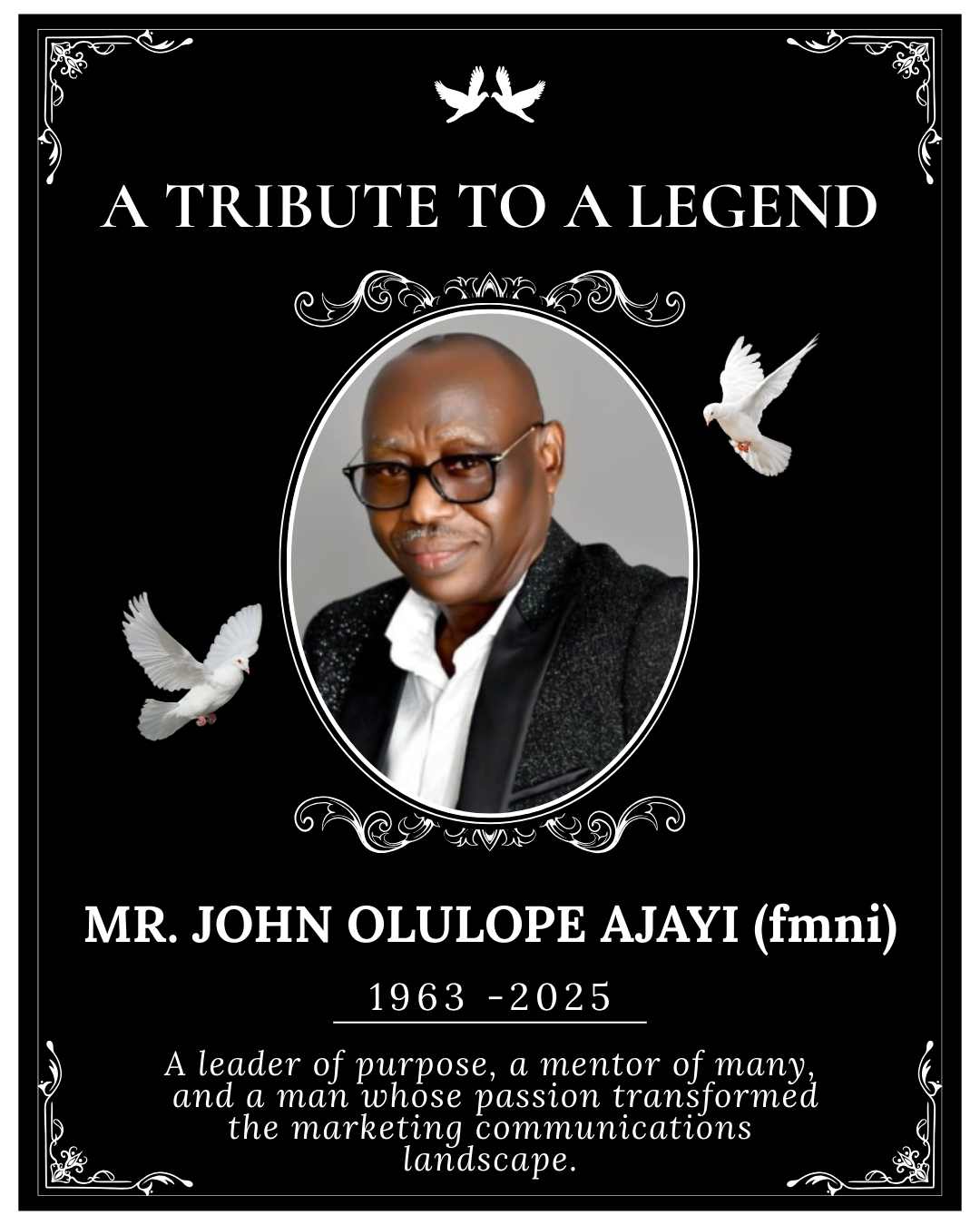 ‎It is with profound sadness that we share the news of the passing of our dear Publisher, Managing Director/ Thought Leader/ Colleague/ Member/ Friend John Ajayi, who left us on December10, 2025. He was the Visioneer/ Publisher of MARKETING EDGE, an industry leading magazine (print/online) and will be deeply missed for his thought leadership, consistency, commitment, dedication, and resilience. A life so creatively and innovatively lived deserves to be creatively and innovatively remembered.