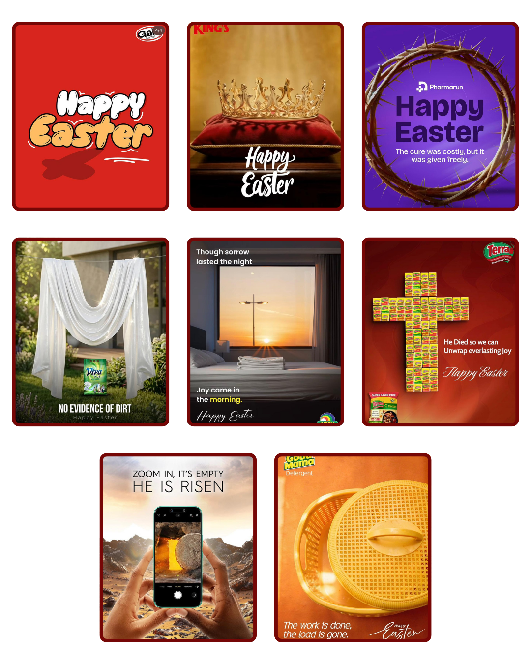 Good Mama Detergent closed with the most grounded, most local, most intimate execution of Easter 2026. An empty yellow laundry basket, the kind found in homes across Nigeria, sits in warm morning light, its lid resting open beside it. “The work is done, the load is gone.” The laundry is finished. The burden is lifted. The basket is empty. Good Mama did not reach for the tomb or the cross or the resurrection light. It reached for the kitchen, the compound, the basin, the world its customer lives in every day, and found Easter there. The work it does and the work of the cross share the same conclusion: what was heavy has been lifted. What was dirty is clean. The load is gone. This is brand truth at its most honest, most human, and most effortlessly profound.